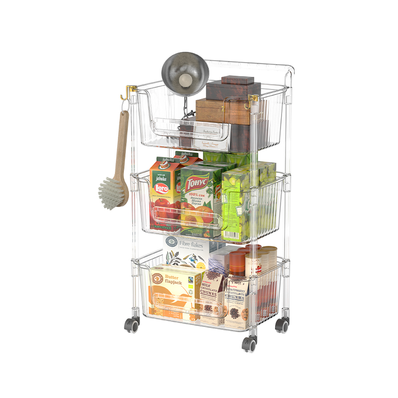 Käyttämällä Säädettävä kirkas 3 -tason säilytyskärryn järjestäjä pyörillä Tarjoaa monia merkittäviä etuja perinteisiin säilytysmenetelmiin verrattuna, ja säilytyskärryt on suunniteltu ratkaisemaan joitain perinteisten säilytysmenetelmien rajoituksia. Se on varustettu pyörillä, mikä mahdollistaa sen siirtämisen helposti haluttuun sijaintiin ilman, että nostoa tai vetämistä tarvetta. Tämä on erityisen hyödyllistä niille, joiden on järjestettävä tavarat usein uudelleen tai joiden tallennustarpeet muuttuvat jatkuvasti. Tämä joustavuus voi merkittävästi parantaa kotikäyttöön siirtymistä keittiöstä ruokasaliin tai toimistossa kokoushuoneesta toiseen.